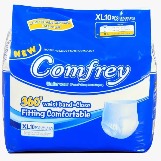 Comfrey adult pull-up diaper is a disposable garment worn instead of underwear to help alleviate leaks from urinary or fecal incontinence. Sometimes adult diapers or pull-ups are only worn while sleeping but this is not always the case. They can be worn during the day or night and they can be worn by anyone regardless of age or gender.