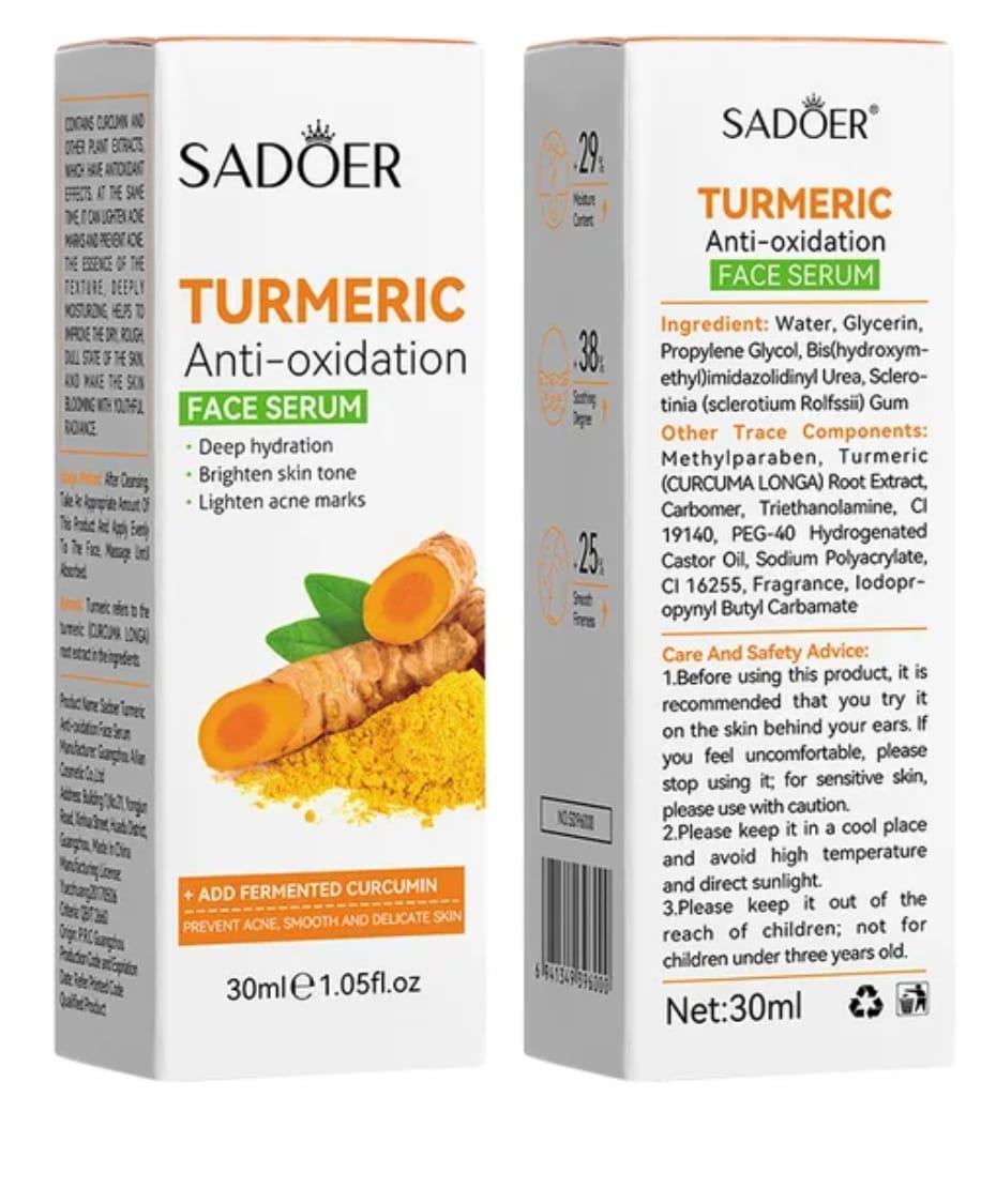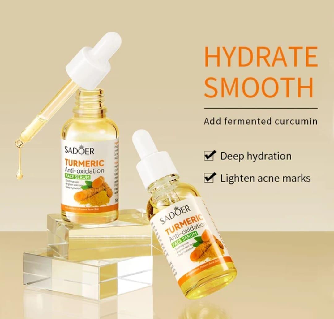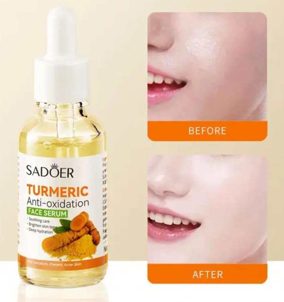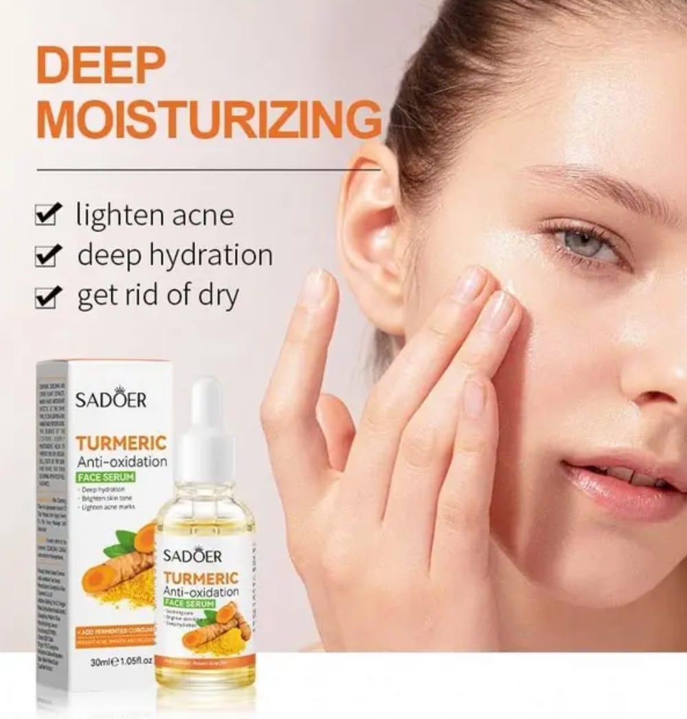 Introducing Sadoer Anti-Aging Turmeric Antioxidation Face Serum, your key to unlocking radiant, youthful skin. Infused with the power of turmeric and potent antioxidants, our serum offers a transformative skincare experience like no other. Sadoer Anti-Aging Turmeric Antioxidation Face Serum into your skincare routine: