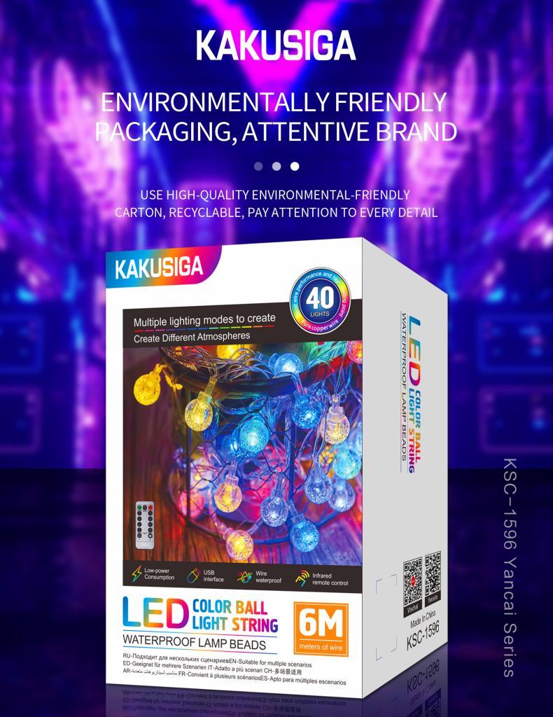 The KSC-1596 YANCAI Series LED Color Ball Light String brings vibrant RGB lighting to any indoor or outdoor space. With a 6-meter wire carrying 40 high-quality 5050 LED lamp beads, this light string delivers bright, colorful illumination perfect for parties, home décor, gardens, events, or festive celebrations. Designed with an IP65 waterproof rating, it withstands outdoor conditions while offering long-lasting performance. The included infrared remote control allows you to change colors, adjust brightness, and switch lighting modes with ease. Compact, lightweight, and easy to install, this LED string light adds charm and atmosphere anywhere you place it.