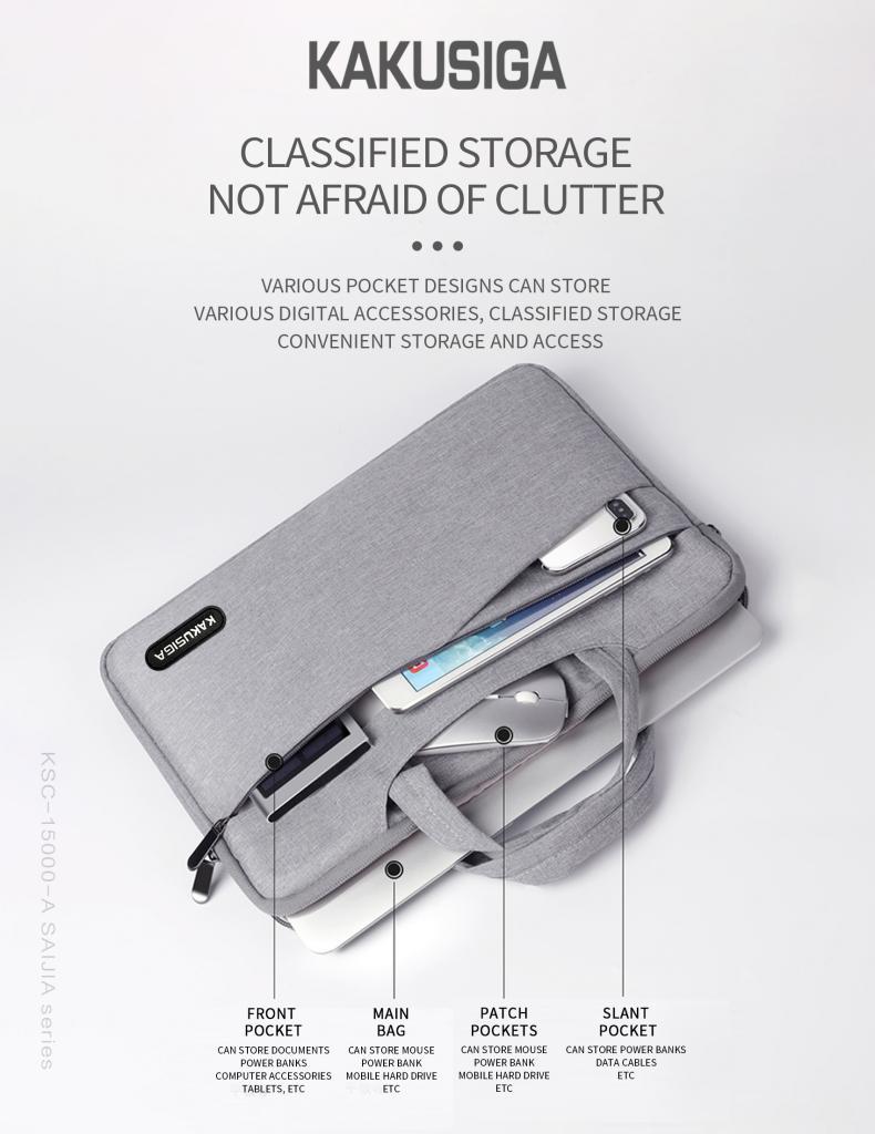 This versatile and stylish KAKUSIGA Splash-proof Fabric Carried Concealed Large Capacity Classified Storage 13.3-inch Laptop Bag is a sleek and durable laptop bag designed to protect and organize your 13.3-inch laptop and daily essentials. Itis designed for 13.3-inch laptops, including MacBook Air and Pro models. Ideal for professionals, students, and travelers, this bag offers a perfect combination of style, functionality, and reliability.