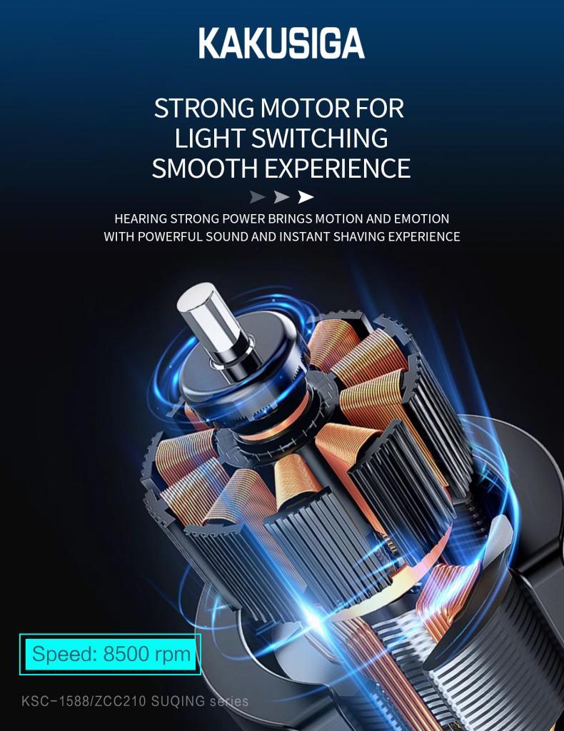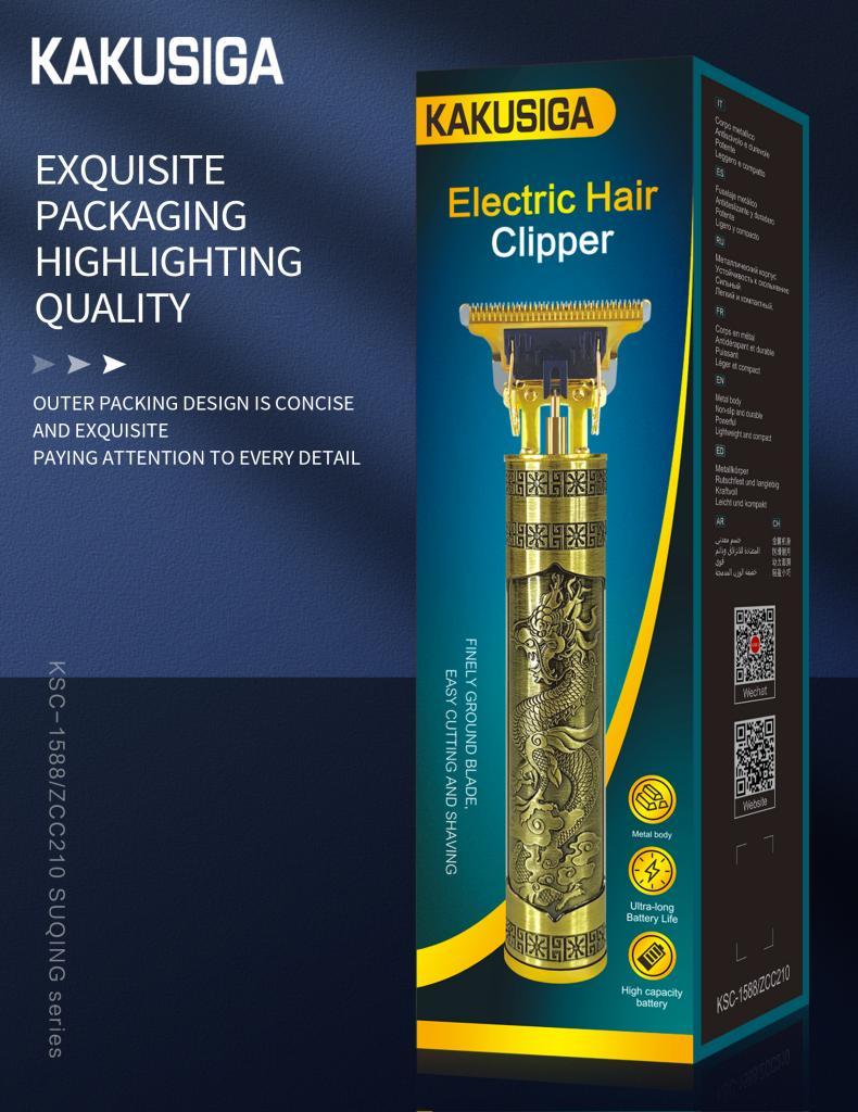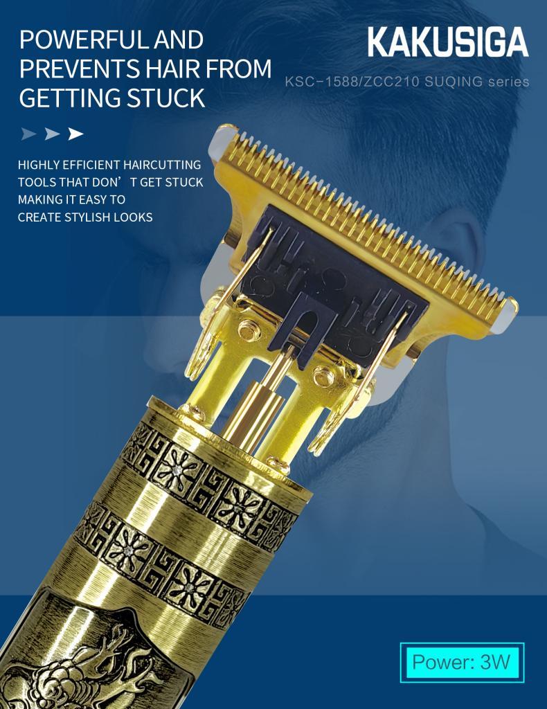 Upgrade your grooming with the KSC-1588 SUQING Series Electric Hair Clipper, a premium tool built for speed, precision and durability. Crafted from solid zinc alloy with an elegant bronze finish, this clipper feels as good as it performs. Its powerful 8500 RPM motor delivers smooth, clean cuts without pulling or snagging—making it ideal for both professional barbers and home grooming. With an 800mAh battery, 60-minute fast charging, and 60-minute continuous use, this clipper is designed for convenience and reliability. Whether you’re shaping your beard, refreshing your haircut, or doing quick touch-ups, the KSC-1588 ensures effortless results every time. This is the clipper that blends style, performance, and long-lasting quality—perfect for anyone who wants to look sharp with minimal effort.