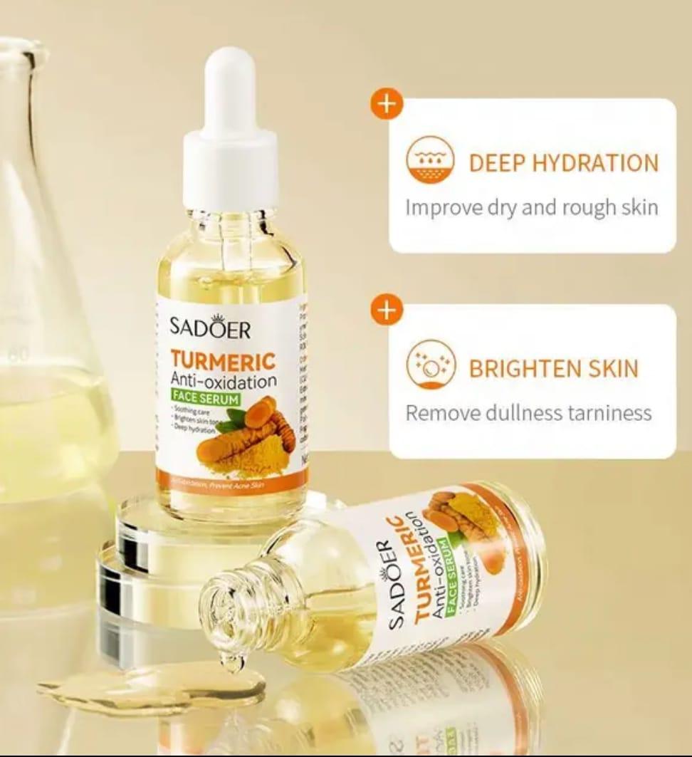 Introducing Sadoer Anti-Aging Turmeric Antioxidation Face Serum, your key to unlocking radiant, youthful skin. Infused with the power of turmeric and potent antioxidants, our serum offers a transformative skincare experience like no other. Sadoer Anti-Aging Turmeric Antioxidation Face Serum into your skincare routine: